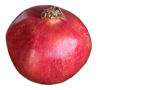 Pomegranate (Punica granatum) Isolated on White Background with Copy Text Space. Fresh Red Fruit with Juicy Edible Seeds and Leathery Skin. PNG File.