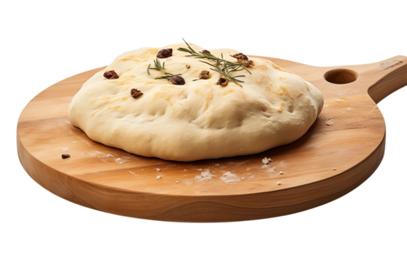 Italian Focaccia Bread on Wood Board - Savory Baked Food on transparent background png
