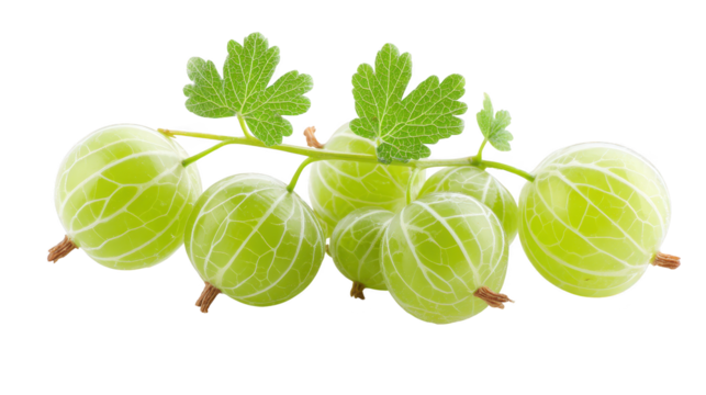 A cluster of ripe red grapes with vibrant green leaves isolated on a transparent background grape cluster