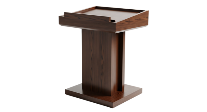 Wooden lectern for speeches or academic presentations, a standing podium for public speaking, transparent background