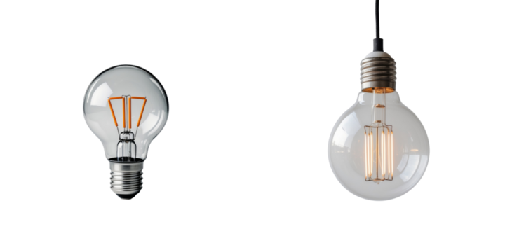 Two modern energy-efficient LED light bulbs isolated with transparent background