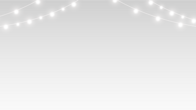 Elegant string lights overlay on black and white backgrounds, glowing warm garland creating festive atmosphere for Christmas decoration and celebration projects.