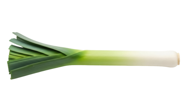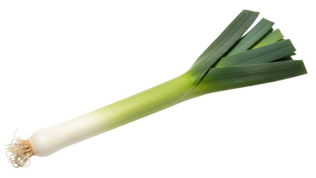 Fresh green leek isolated PNG, healthy vegetable for cooking and culinary use on transparent background
