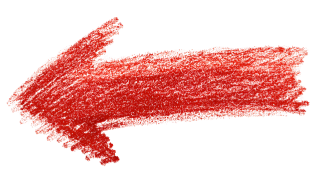 A crayon-like, hand-drawn red arrow pointing left on a black background