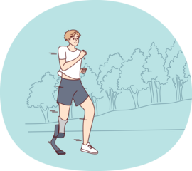 Leg amputation rehabilitation with prosthetic limb for mobility on a transparent background, cut out