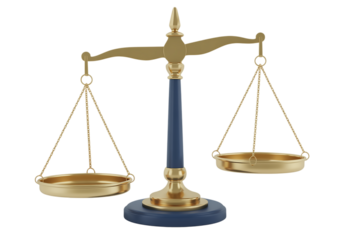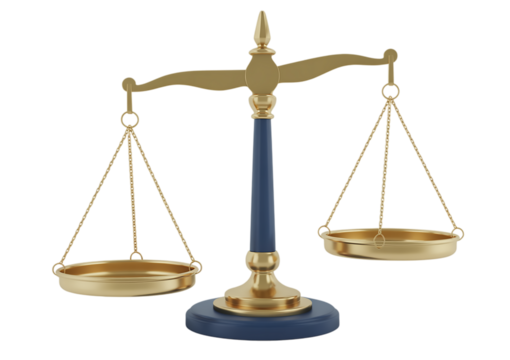 Vintage brass balance scale symbolizing justice law and fair judgment on a transparent background