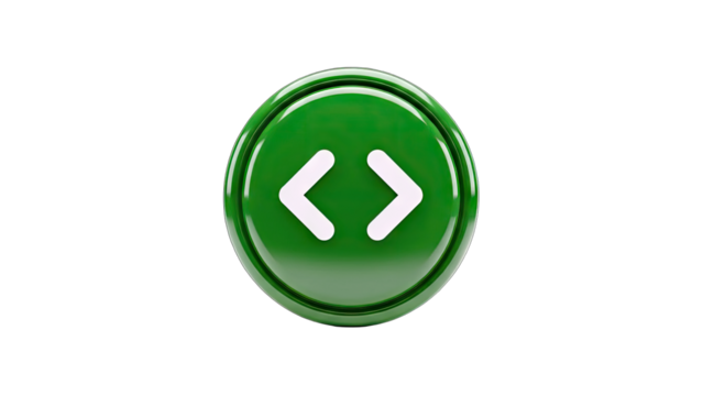 Green Button with Code Arrows on White Background