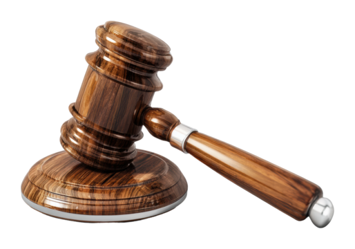 A wooden gavel on a block, commonly used in courts of law and auctions. It is a symbol of authority and justice.