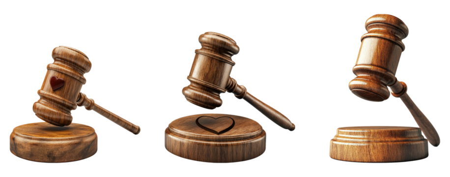 Wooden gavel set isolated on a transparent background for legal themes