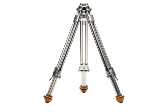 A Polished Silver Tripod Stands Ready for the Next Capture on a Clear PNG or White Background.