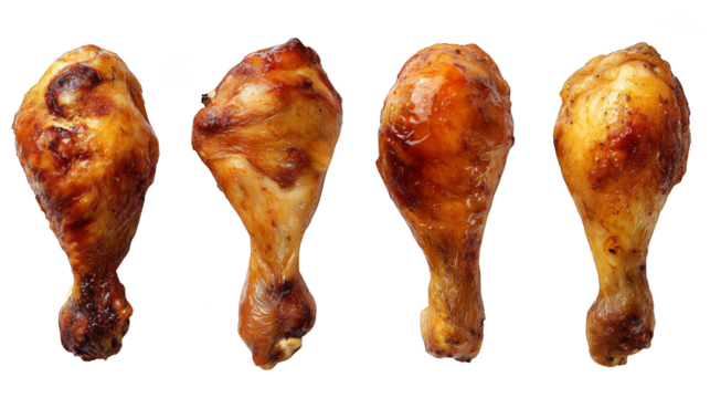 Four deliciously seasoned chicken legs ready for grilling or roasting.