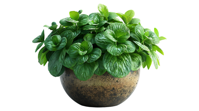 Medicinal plants lemon balm in a pot on a transparent background
