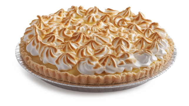 Delightful lemon meringue pie with golden peaks on a crisp pastry shell, ready to be enjoyed isolated on transparent background
