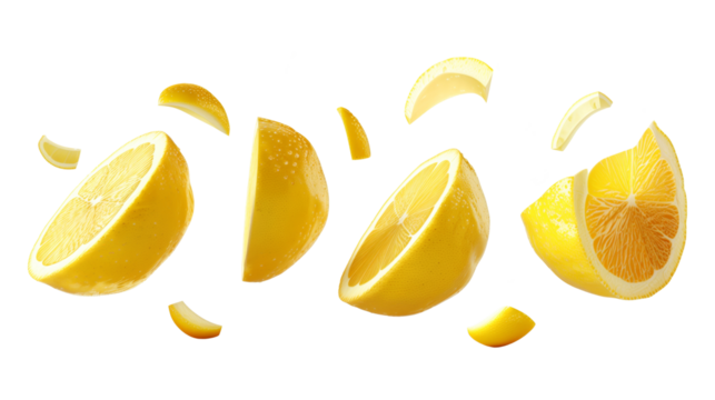 lemon fruit, half and slice isolated, Fresh and Juicy Lemon, transparent PNG, PNG format
