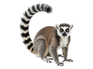 Ring tailed lemur clinging to a branch with striped tail clear isolation ringtailed lemur primate animal transparent background