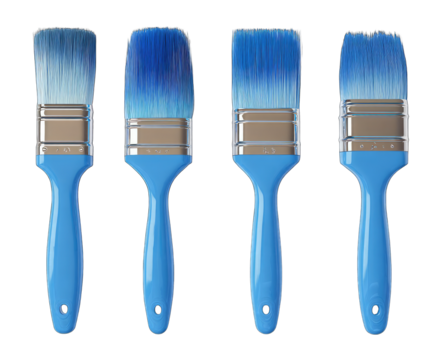 Four blue paintbrushes in a row, showing varying bristle lengths