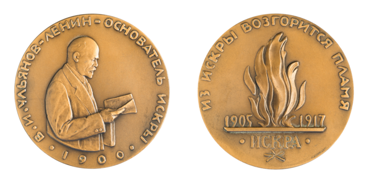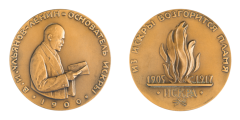 Jubilee medal large desktop medallion famous Russian revolutionary, politician, Marxist Vladimir Ilyich Lenin Ulyanov close-up illustrative editorial