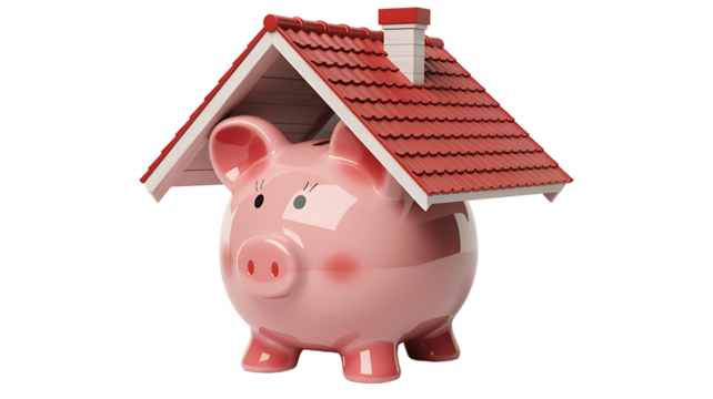 Piggy bank with house roof home savings concept