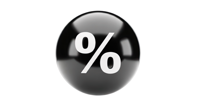 Glossy Black Sphere with Percent Symbol