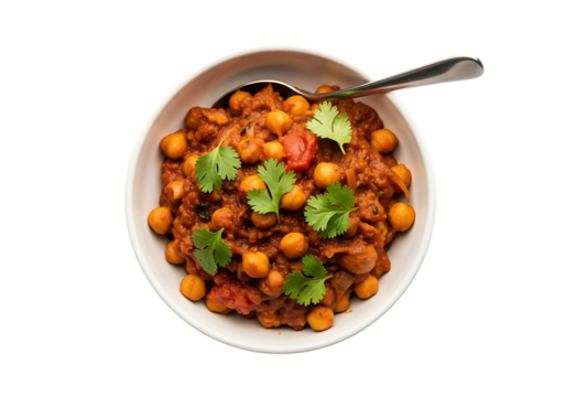 Bowl of chickpea curry with cilantro isolated on transparent background