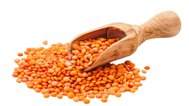 red lentils in wooden spoon isolated on transparent background png