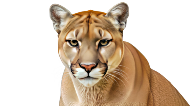 Cougar Portrait: Muscular Build and Tawny Coat Isolated on White Backdrop
