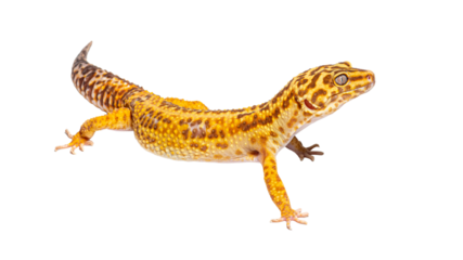 Colorful Leopard Gecko with Bright Orange Spots on White Background Cut Out PNG.
