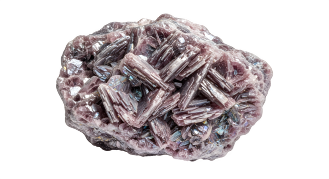 A rough lepidolite mineral specimen isolated on transparent background, showcasing its purple and pink hues, geological formation, and potential healing properties
