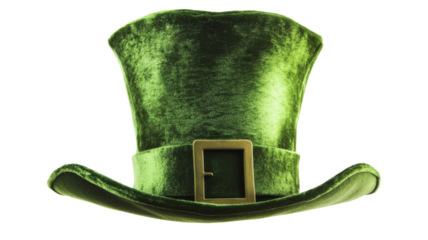 Green leprechaun top hat with golden buckle celebrating saint patrick's day on transparent background
