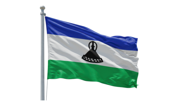 flag of lesotho on a transparent background, waving in the wind, national symbol of lesotho, african country, tall flagpole, no background, transparent png