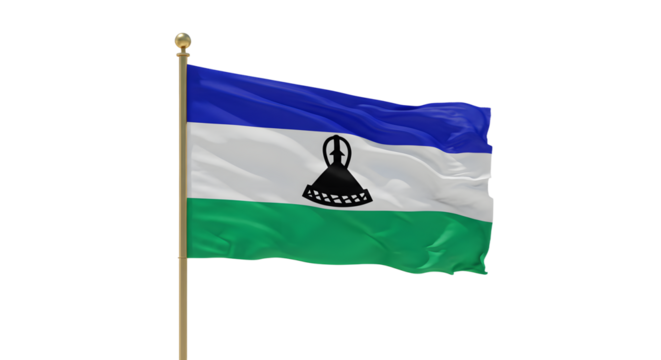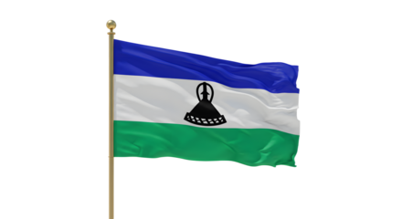 Flag of Lesotho waving on flagpole isolated on white background, national symbol of Lesotho