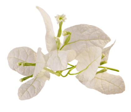 Bougainvillea glabra, the lesser bougainvillea or white paperflower isolated. Png transparency