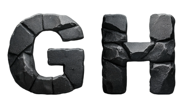 D Letters G H Black Stone Rock Alphabet Isolated on White