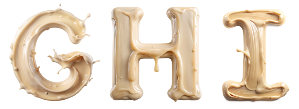 Set of letters G, H, I from cosmetic strokes on a white background. Concept of the English alphabet