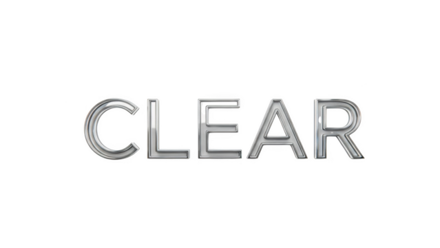 Silver 3 D Text C L E A R on Black Background clear word