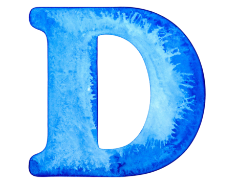 Blue Watercolor Letter D Isolated.