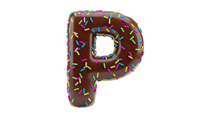 Donut Letter P with Chocolate Glaze and Sprinkles