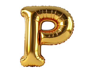 Gleaming golden foil balloon in the shape of the capital letter "P.