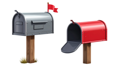 Classic and Modern Mailbox Pair Collection, isolated on transparent background.