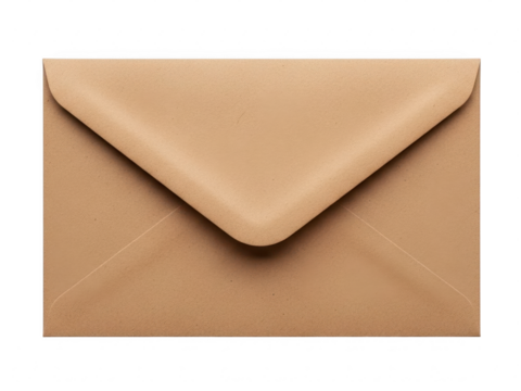 A plain white envelope with a pointed flap, designed for mailing letters or documents, on a transparent background