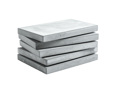 Stack of rectangular concrete slabs, viewed at an angle, against a black background