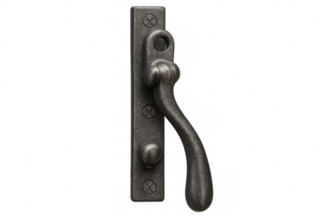 Vintage metal window casement fastener, a traditional lever handle mechanism for home hardware and securing windows