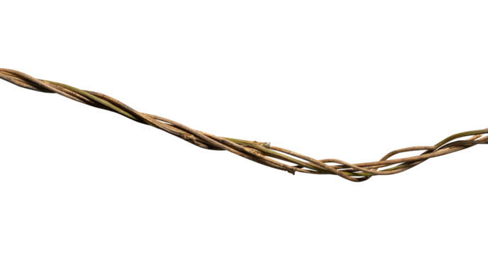 Twisted jungle vines creating a tangled knot, liana hanging roots, nature element on transparent background