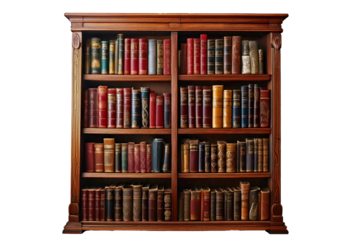 A wooden bookshelf filled with colorful books perfect for education library and home decor t
