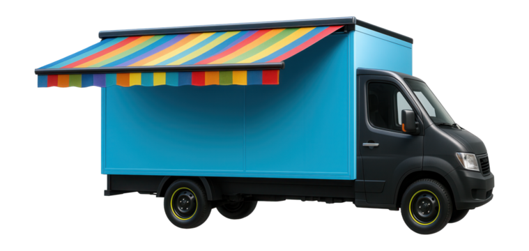 Mobile library truck with colorful box body and retractable awning for outdoor reading