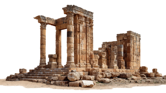 Ancient ruins of Leptis Magna in Libya background isolated on a Transparent background, PNG file.