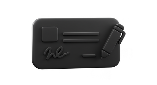 3D Render Black Card with Pen for Signature on Transparent Image