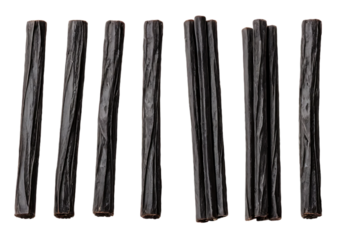 Sweet black licorice sticks isolated on white background – ideal for candy and food photography