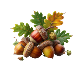 Gathering of acorns and leaves nature scene still life autumn natural beauty isolated on transparent background, png