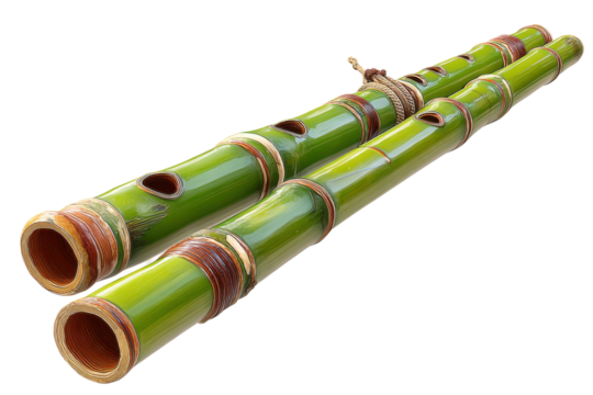 Bamboo flute performance outdoor festival music event nature scene. Isolated on transparent background, png.